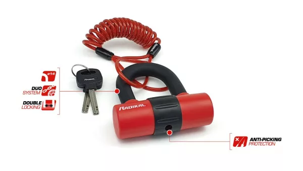 El RADIKAL RK72 está recomendado para asegurar motos y scooters en lugares con un riesgo medio de robo y es un antirrobo increíblemente práctico para el usar a diario.