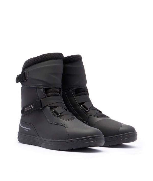 Botines moto touring con membrana impermeable T-Dry, suela Groundtrax® e inserción Zplate®. Diseñados para garantizar comodidad, protección y máxima versatilidad de uso.