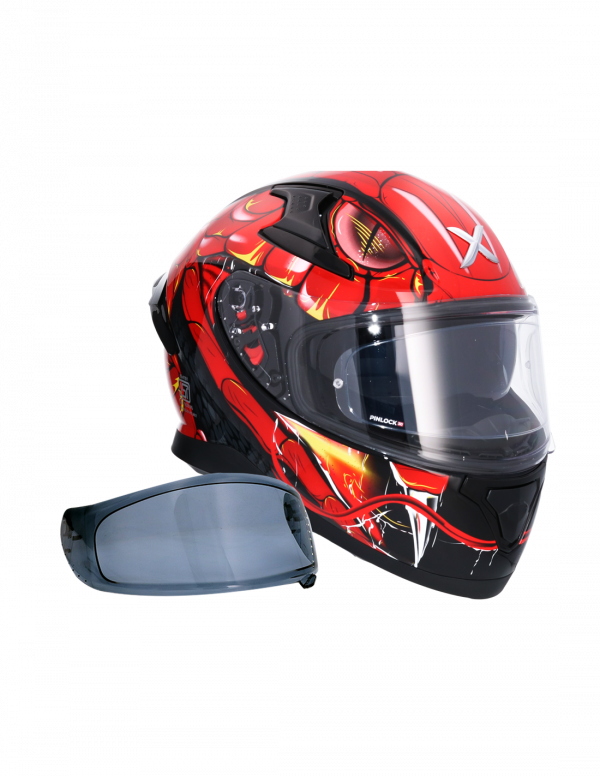 Casco integral AXOR APEX VENOMOUS DV para hombre y mujer. Incluye Pantalla ahumada y Pinlock. Casco con gafa solar y diseño llamativo en color rojo brillo.