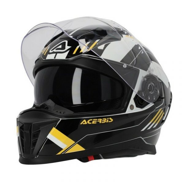 Casco Integral Acerbis X-Way Graphic color blanco negro y amarillo con gafa solar SUN VISOR
