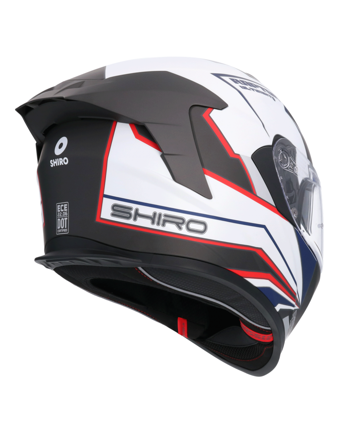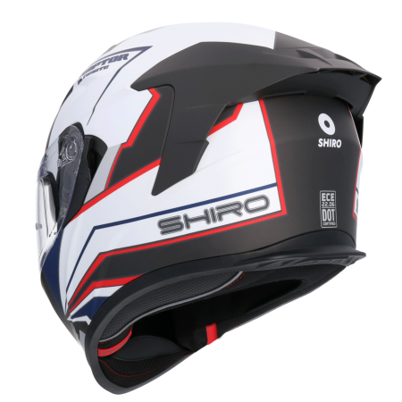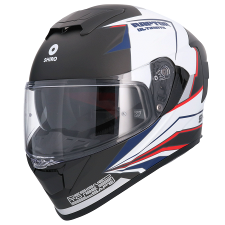 CASCO DE MOTO INTEGRAL SHIRO RAPTOR ULTIMATE BLANCO Y NEGRO MATE. CALOTA DE RESINA TIPO ABS. SISTEMA DE CIERRE MICROMÉTRICO.100% DESMONTABLE Y LAVABLE. VISOR SOLAR INTERIOR. HOMOLOGACIÓN ECE 22.06 CASCO INTEGRAL GAFA SOLAR BARATO DOBLE VISOR