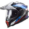 Casco de moto trail LS2 MX701 Explorer, desarrollado por los diseñadores e ingenieros de LS2 España. Fabricado en HPFC, composite de fibra de alto rendimiento, una mezcla de tejido de fibra de vidrio exclusivo y resina orgánica que se coloca cuidadosamente en capas sobre una calota fuerte, ultraligera, pero rígida al mismo tiempo, capaz de absorber cualquier impacto a la vez que dispersa la energía, logrando así una conducción más segura que te permite conducir con tranquilidad.