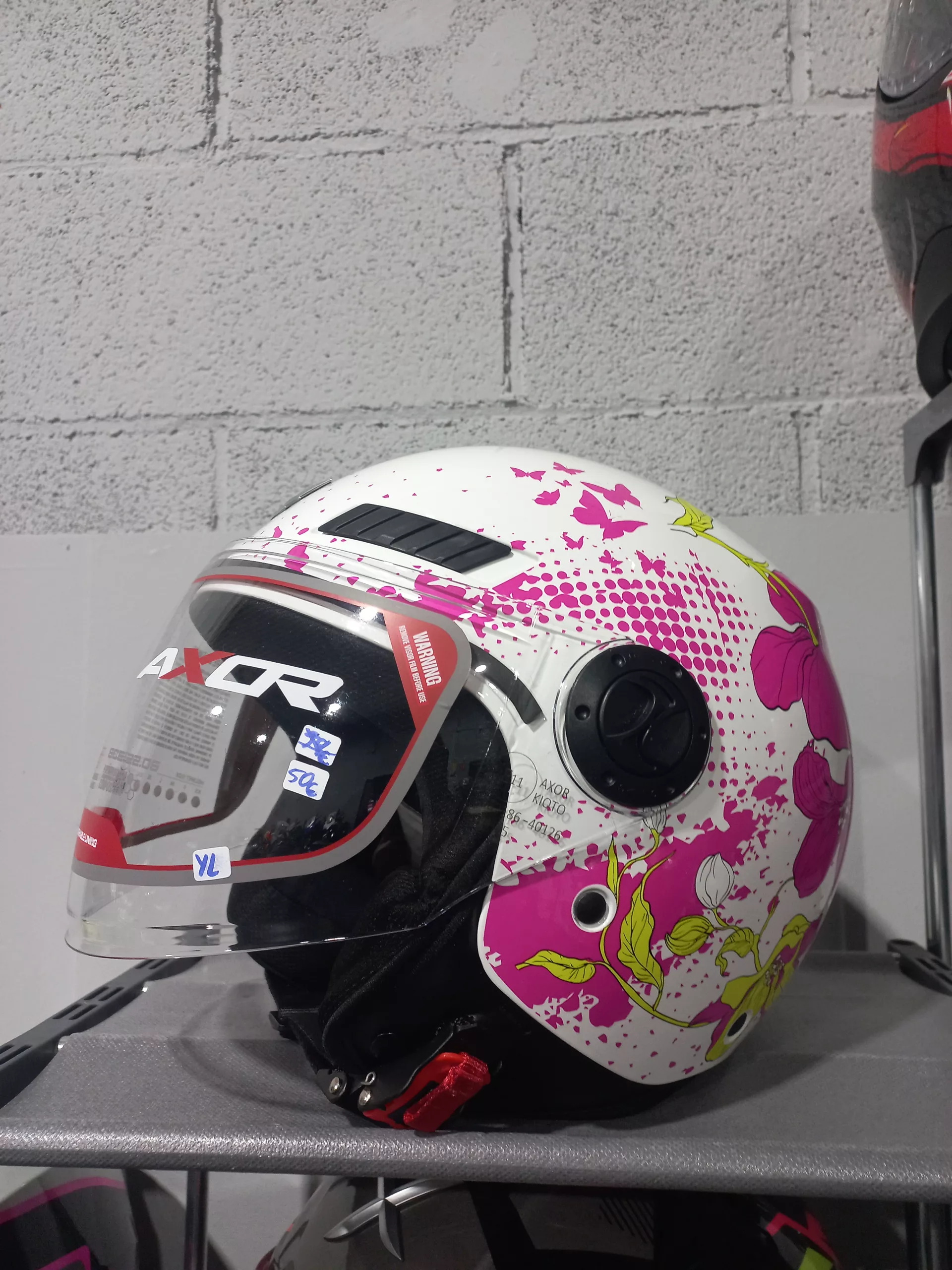 CASCO JET KIOTO FLOWER. Casco Jet con pantalla transparente, color negro o blanco para hombre, mujer, niño o niña. Homologación ECE 22.06 & DOT – Cierre micrométrico