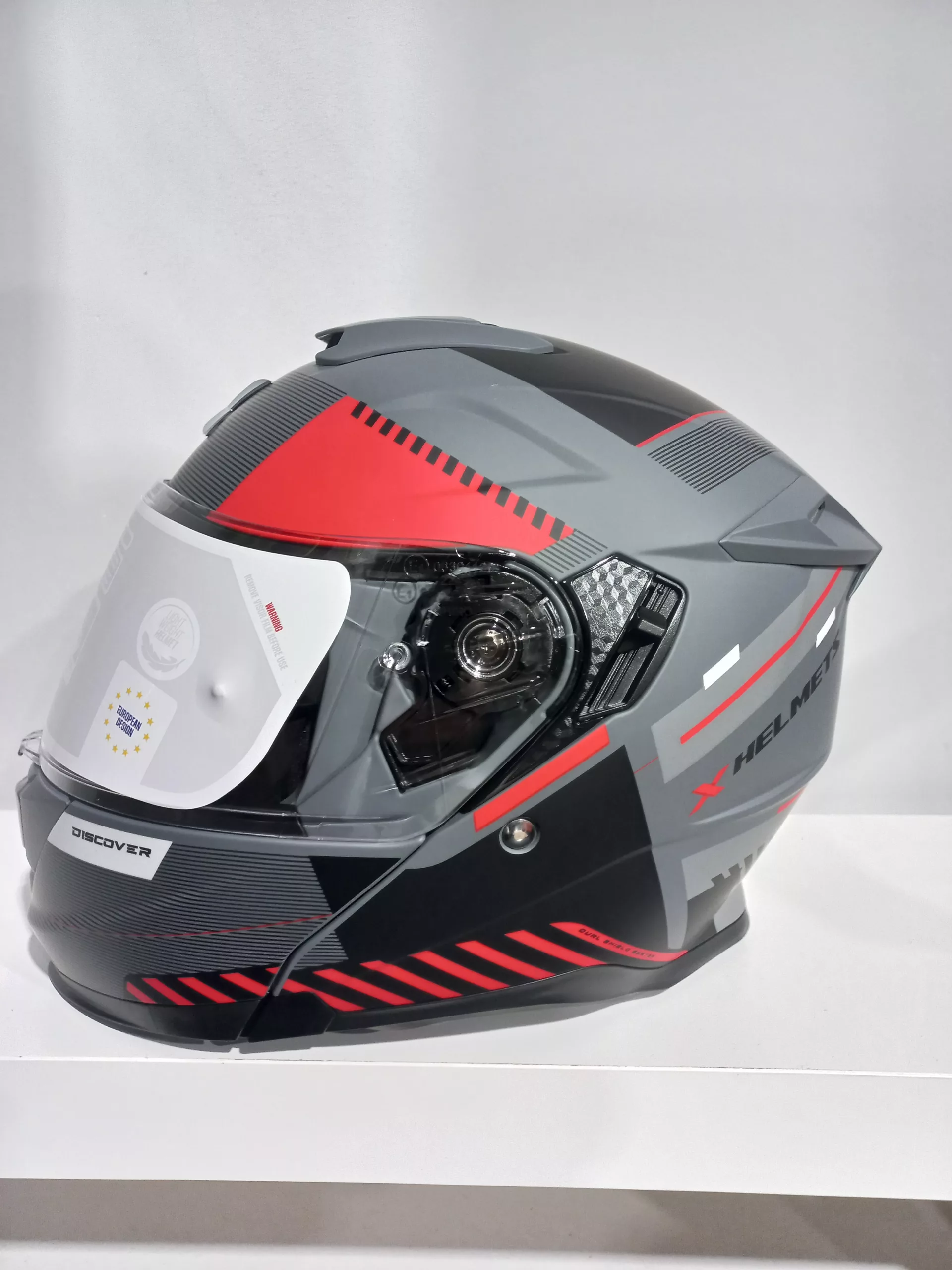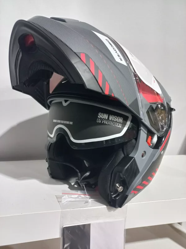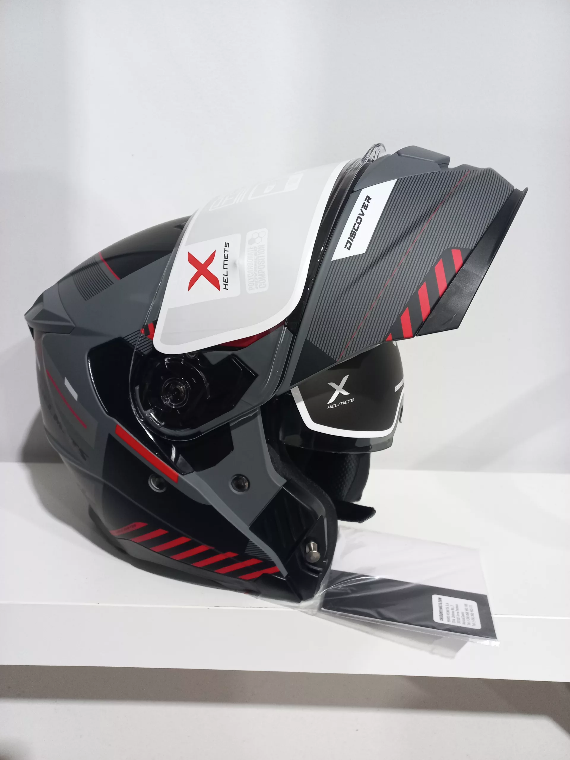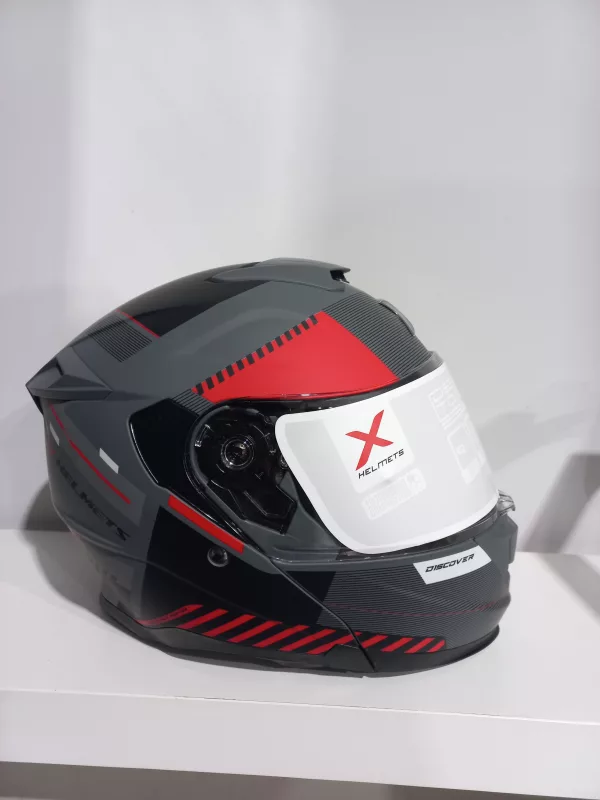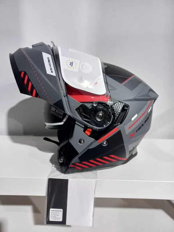 Casco Modular para Hombre y Mujer Axor Discover Experience – Homologación ECE 22.06 P/J – Color Gris y Rojo acabado Mate