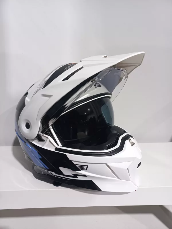Casco Trail abatible convertible. Origine Adventure es un casco trail abatible, al que se le quita de manera sencilla el pico y se convierte en un modular práctico. Gafa solar – ECE2206