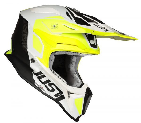 CASCO MOTOCROSS ENDURO JUST1 J18 PULSAR AMARILLO FLÚOR BLANCO NEGRO MATE