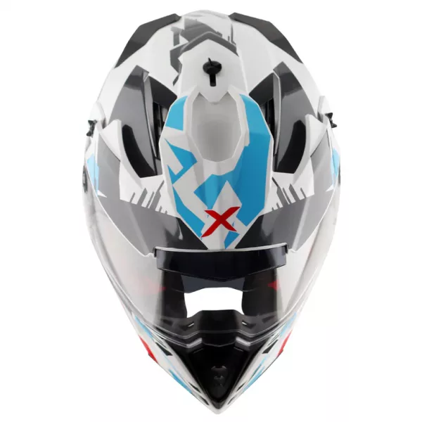 El Axor X-Cross Adventure D/V X1 en blanco y rojo acabado brillo destaca como un casco dual sport inspirado en el mundo off-road. Combina una calota de termoplástico resistente con un diseño aerodinámico pensado para rendir tanto en carretera como en pistas de tierra.