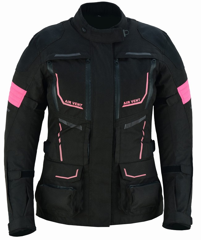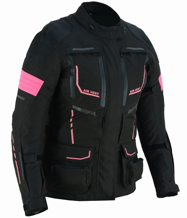 Chaqueta Kangroute 4Season Titan Rosa Fucsia. Chaqueta muy técnica ideal para motos Trail-Adventure, confeccionada en poliéster. Dispone de una práctica membrana impermeable y transpirable totalmente desmontable, forro térmico desmontable y sistema de ventilación mediante solapas modulares para poder adaptarse a las diferentes situaciones climáticas, Kangroute Titan es una chaqueta pensada para llevar durante los 365 días del año, se puede combinar con el pantalón Kangroute Oceano 4Season.