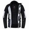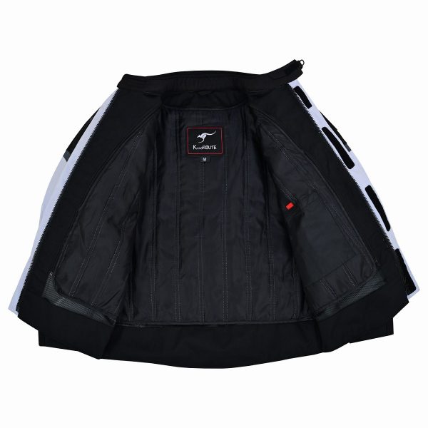 Chaqueta de moto de gran confort con mangas precurvadas, cuello de neopreno, ajustes en puños, cintura y mangas, además de bolsillos interiores y exteriores, incluido un bolsillo trasero 100% impermeable. Incorpora cremalleras YKK®, detalles reflectantes y cremallera de unión chaqueta–pantalón. Perfecta para motoristas que buscan protección, versatilidad y rendimiento en cualquier clima.