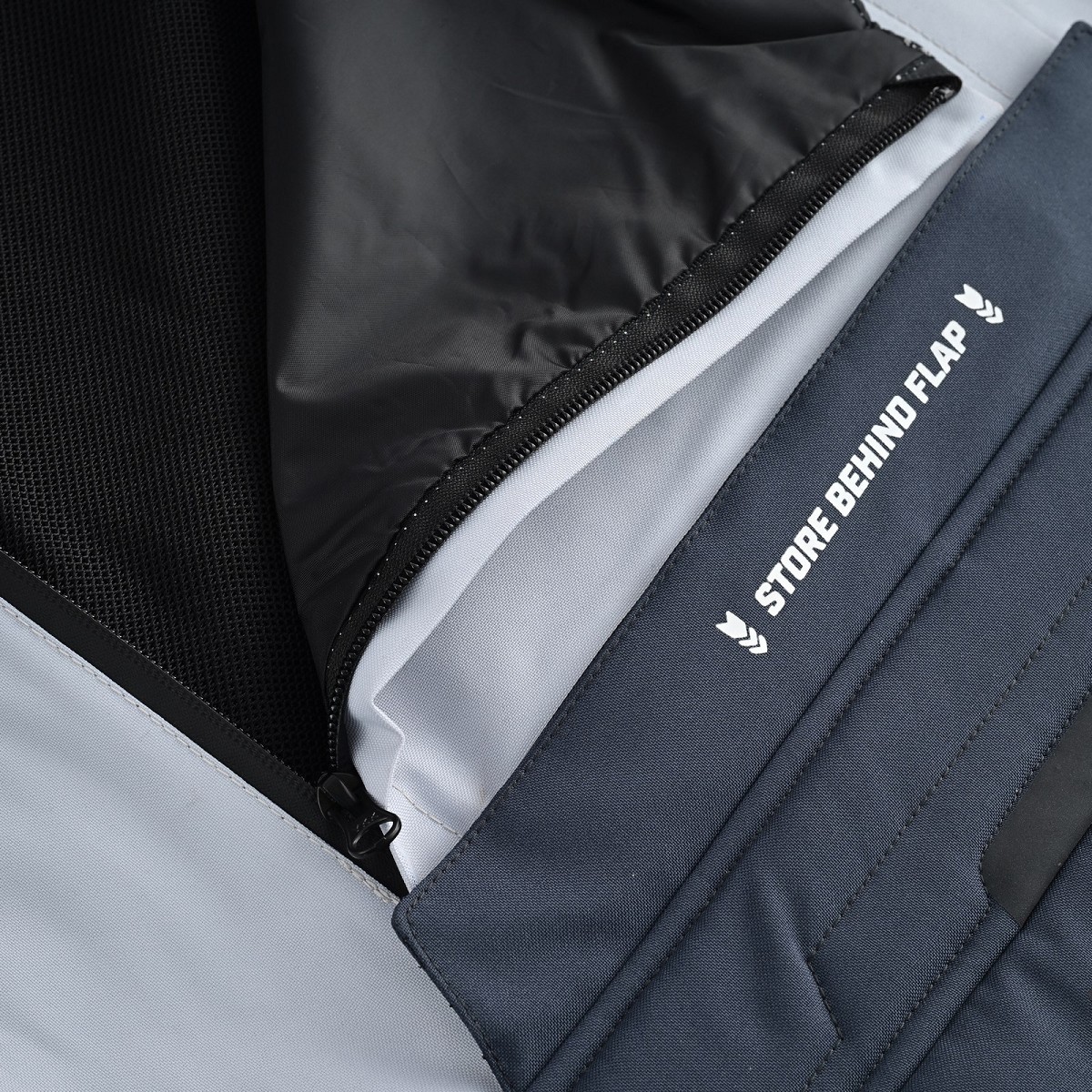 - Para los días de verano, la chaqueta incorpora amplios paneles de ventilación en el pecho y la espalda.