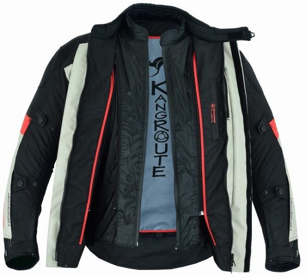 Chaqueta Kangroute 4Season Titan. Chaqueta muy técnica ideal para motos Trail-Adventure, confeccionada en poliéster. Dispone de una práctica membrana impermeable y transpirable totalmente desmontable, forro térmico desmontable y sistema de ventilación mediante solapas modulares para poder adaptarse a las diferentes situaciones climáticas, Kangroute Titan es una chaqueta pensada para llevar durante los 365 días del año, se puede combinar con el pantalón Kangroute Oceano 4Season.