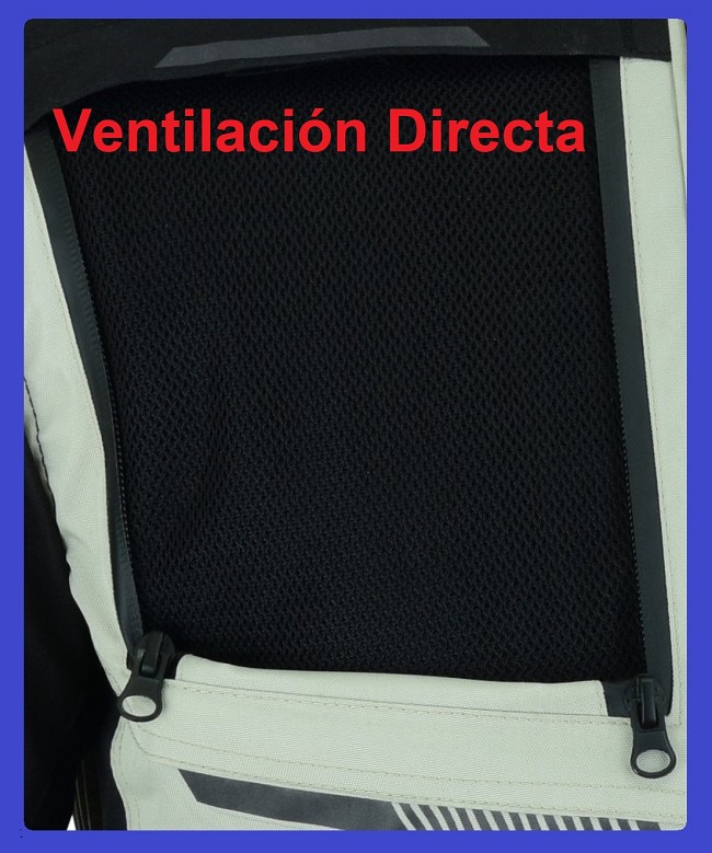 - dispone de amplias entradas de aire en espalda con cremalleras impermeables.