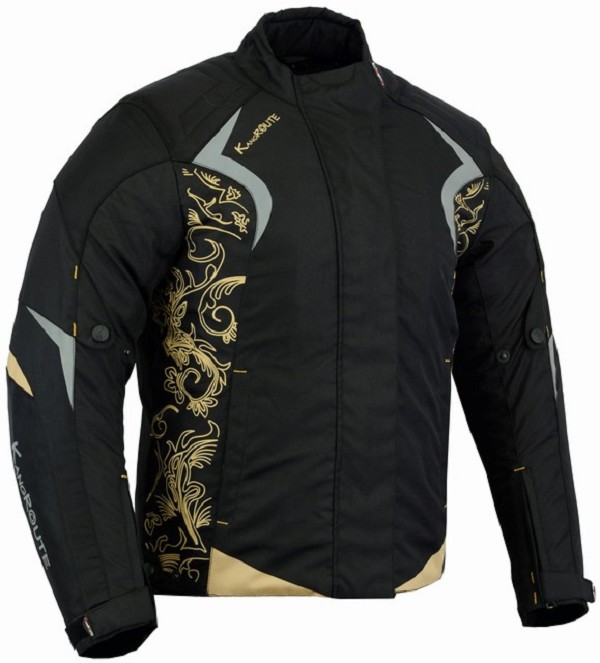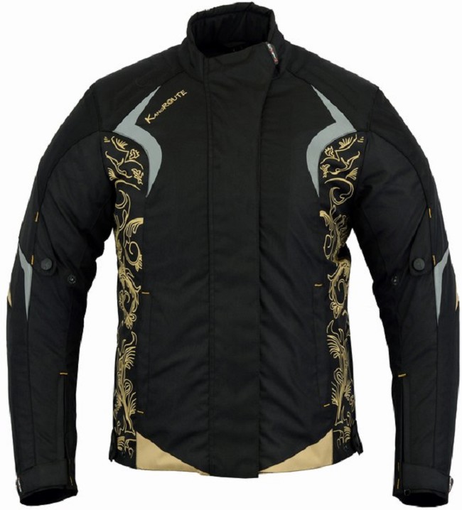 Chaqueta de cordura para mujer con protecciones homologadas CE y desmontables en codos, hombros, espalda y forro térmico desmontable.