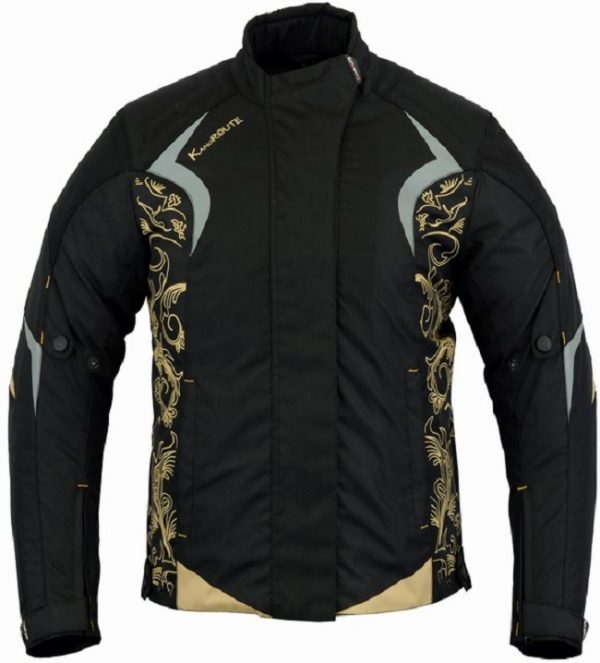 Chaqueta de cordura para mujer con protecciones homologadas CE y desmontables en codos, hombros, espalda y forro térmico desmontable. Chaqueta moto mujer invierno corta barata negro gris plata Kangroute. ESTILO TATTOO