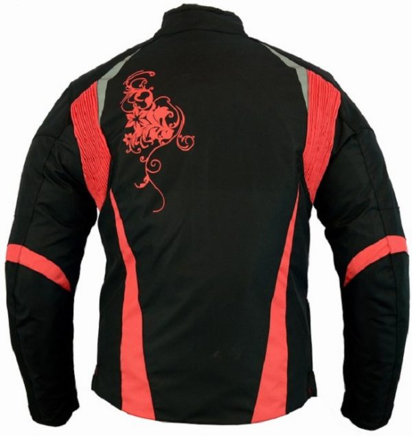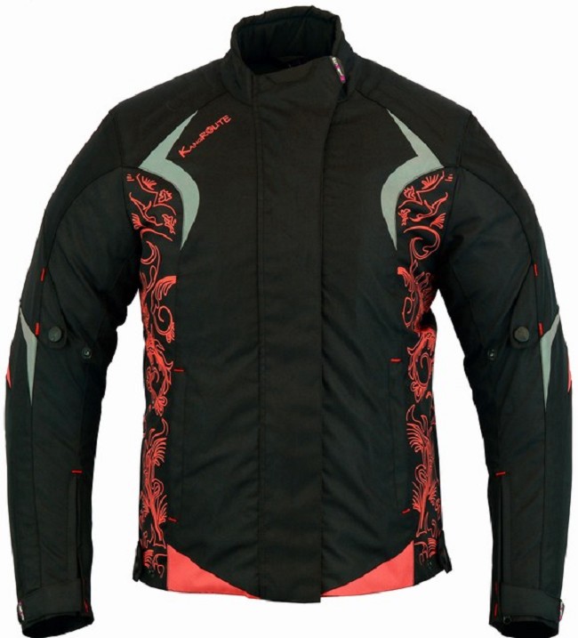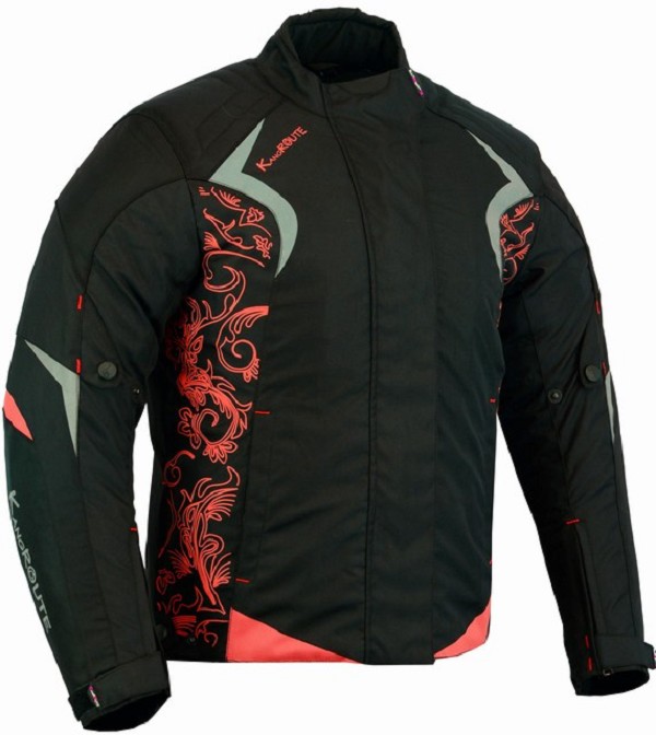 Chaqueta de cordura para mujer con protecciones homologadas CE y desmontables en codos, hombros, espalda y forro térmico desmontable. Chaqueta moto mujer invierno corta barata negro gris plata Kangroute. ESTILO TATTOO COLOR ROSA FUCSIA