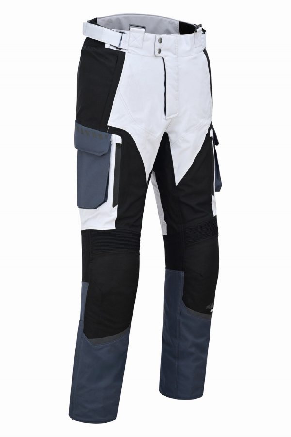 Pantalón cuatro estaciones Adventure Saturno de Kangroute, homologado EN17092-6-2020 AA. Ofrece alta seguridad y confort en rutas touring/adventure. Incluye forro térmico desmontable, estructura impermeable y transpirable y ventilaciones en los muslos para usar todo el año. Incorpora protecciones Nivel 2 en rodillas y caderas (CE EN1621) y cremallera YKK® para unirlo a la chaqueta.