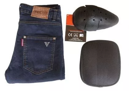 Vaquero de moto de chico Invictus Wayne color azul. Protecciones homologadas en rodillas y caderas. Slim fit.