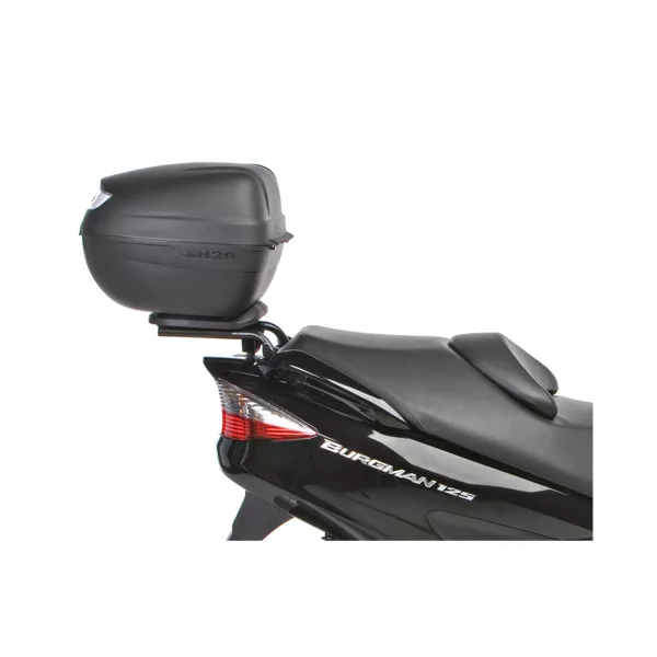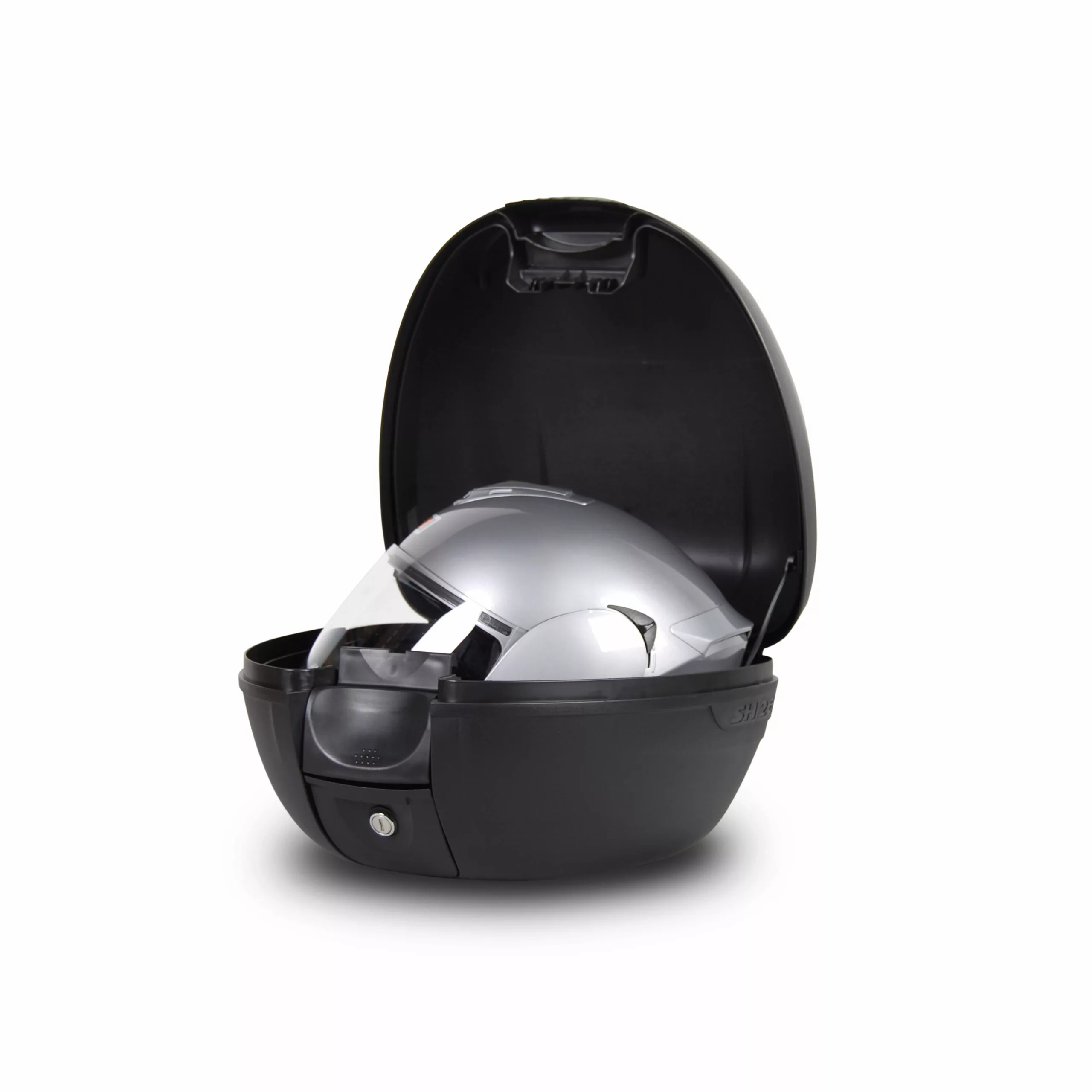 La maleta de moto SH26 es la más pequeña de la gama (26 litros) con capacidad para un casco, perfecta para scooters y ciclomotores. Cuenta con el cierre a presión Press Lock System y diferentes colores de tapa.
