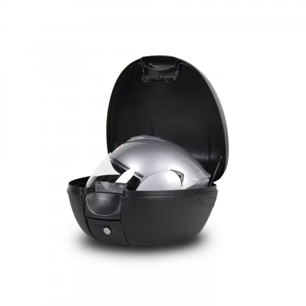 El baúl SH26 tiene capacidad para 1 casco integral, perfecto para scooters. Incluye el «Press Lock System» y la parrilla de montaje.