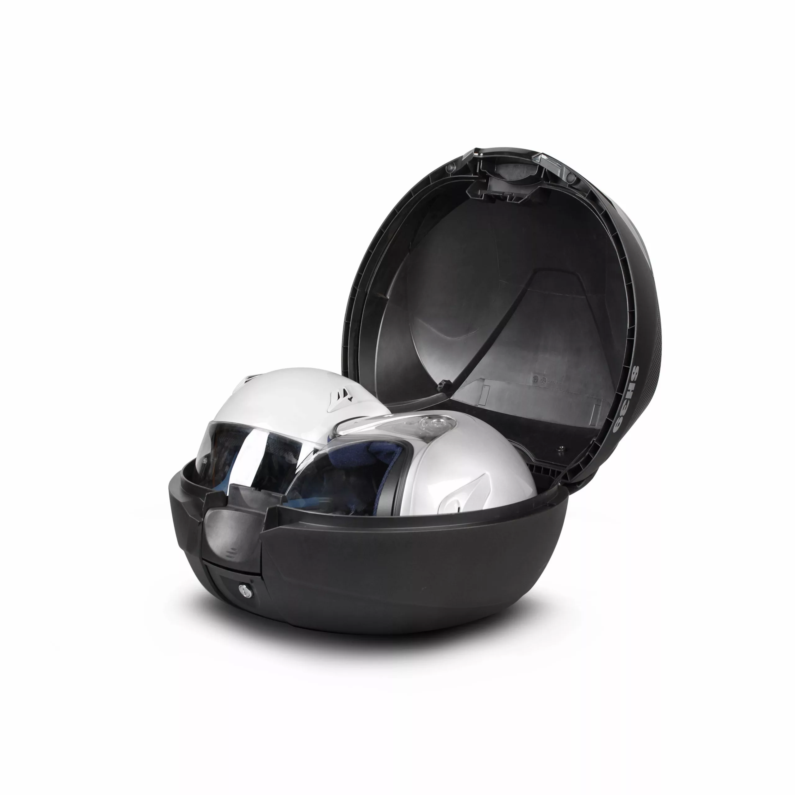 El baúl SH39 con capacidad para 2 cascos jet o un modular y un casco jet, combina diseño y funcionalidad y destaca por su ligereza y optimización de volumen. También incluye el sistema «Press Lock System» y parrilla de montaje.